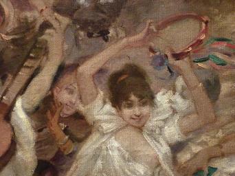 | Keywords: WILLETTE Adolphe,1884 - Parce Domine - Detail 043.jpg - Detail 043 - Jeune femme jouant du tambourin - Young woman playing tambourine - Montmartre - 1884 Oil on canvas Montmartre Own other versions PD-old-auto 1926 Details of Parce Domine by Adolphe Willette |