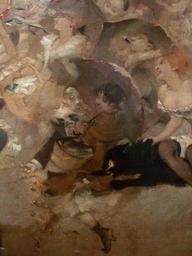 | Keywords: WILLETTE Adolphe,1884 - Parce Domine - Detail 129.jpg - Detail 129 - Pierrot dilapide son argent avec une élégante jeune femme ; un énorme chat noir bondissant au milieu de la foule - Pierrot squanders his money with a young woman ; a huge black cat jumping in the middle of the crowd - Montmartre - 1884 Oil on canvas Montmartre Own other versions PD-old-auto 1926 Details of Parce Domine by Adolphe Willette | ||||