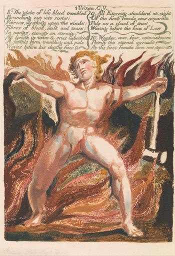 | Keywords: William Blake - The First Book of Urizen, Plate 15, "8. The globe of life blood trembled . . . ." (Bentley 18) - Google Art Project.jpg print brown watercolor paper cream Color-printed relief etching in orange-brown with watercolor on moderately thick slightly textured cream wove paper London 1757 London 1827 William male 2369124 Blake British 1757 - 1827 /collection/yale-center-for-british-art/artwork/the-first-book-of-urizen-plate-15-8-the-globe-of-life-blood-trembled-bentley-18-william-blake/2354793/ William Blake Artist /artist/william-blake/4130035/ 4130035 /collection/yale-center-for-british-art/ Yale Center for British Art 2305845 http //britishart yale edu/ 2/23/2012 9 35 50 PM /collection/yale-center-for-british-art/artwork/the-first-book-of-urizen-plate-15-8-the-globe-of-life-blood-trembled-bentley-18-william-blake/2354793/ 1794 1794 flames men fire text hammer nudes historical subject Color-printed relief etching in orange-brown with watercolor on moderately thick slightly textured cream wove paper 152 2354793 False 1794 3/24/2012 1 34 58 PM YCBA/lido-TMS-2360 http //collections britishart yale edu/vufind/Record/1667316 Yale Center for British Art Paul Mellon Collection print 1790 1800 Felpham Creation w108 x h152 cm 1794 False 0 68359375 Volume the-first-book-of-urizen-plate-15-8-the-globe-of-life-blood-trembled-bentley-18-william-blake The First Book of Urizen Plate 15 8 The globe of life blood trembled Bentley 18 f 108 Inscribed in graphite lower left 16 Inscription _Signed_and_Dated Not signed not dated Not on View Color-printed relief etching in orange-brown with watercolor on moderately thick slightly textured cream wove paper flames men fire text hammer nudes historical subject special url_id 2gGQcE077KdhLg PD-old-100-1923 1827 The Book of Urizen Google Art Project works by William Blake |