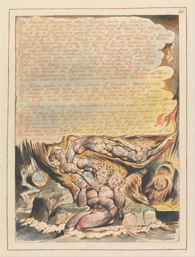 | Keywords: William Blake - Jerusalem, Plate 50, "The Atlantic Mountains...." - Google Art Project.jpg print orange pen ink black watercolor paper cream Relief etching printed in orange with pen and black ink and watercolor on moderately thick smooth cream wove paper London 1757 London 1827 William male 2369124 Blake British 1757 - 1827 /collection/yale-center-for-british-art/artwork/jerusalem-plate-50-the-atlantic-mountains-william-blake/2373600/ William Blake Artist /artist/william-blake/4130035/ 4130035 /collection/yale-center-for-british-art/ Yale Center for British Art 2305845 http //britishart yale edu/ 2/23/2012 9 47 04 PM /collection/yale-center-for-british-art/artwork/jerusalem-plate-50-the-atlantic-mountains-william-blake/2373600/ 1804 1804 to 1820 clouds moon sun rain lightning men fire text island crowns nudes historical subject Relief etching printed in orange with pen and black ink and watercolor on moderately thick smooth cream wove paper 226 2373600 False 1820 3/25/2012 9 08 23 PM YCBA/lido-TMS-3482 http //collections britishart yale edu/vufind/Record/1667769 Yale Center for British Art Paul Mellon Collection print 1800 1830 Felpham Creation w162 x h226 cm 1804 to 1820 False 0 759765625 Volume jerusalem-plate-50-the-atlantic-mountains-william-blake Jerusalem Plate 50 The Atlantic Mountains j 162 No inscription Inscription _Signed_and_Dated Not signed not dated Not on View Relief etching printed in orange with pen and black ink and watercolor on moderately thick smooth cream wove paper clouds moon sun rain lightning men fire text island crowns nudes historical subject special url_id -gHhlJeW2o9emA PD-old-100-1923 1827 Jerusalem The Emanation of the Giant Albion - copy E 050 Google Art Project works by William Blake |
