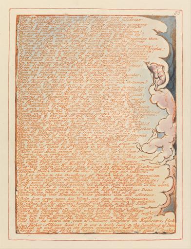 | Keywords: William Blake - Jerusalem, Plate 83, "Corruptability appears upon thy limbs...." - Google Art Project.jpg print orange pen ink black watercolor paper cream Relief etching printed in orange with pen and black ink and watercolor on moderately thick smooth cream wove paper London 1757 London 1827 William male 2369124 Blake British 1757 - 1827 /collection/yale-center-for-british-art/artwork/jerusalem-plate-83-corruptability-appears-upon-thy-limbs-william-blake/2373640/ William Blake Artist /artist/william-blake/4130035/ 4130035 /collection/yale-center-for-british-art/ Yale Center for British Art 2305845 http //britishart yale edu/ 2/23/2012 9 48 01 PM /collection/yale-center-for-british-art/artwork/jerusalem-plate-83-corruptability-appears-upon-thy-limbs-william-blake/2373640/ 1804 1804 to 1820 clouds sky smoke text text nudes historical subject historical subject Relief etching printed in orange with pen and black ink and watercolor on moderately thick smooth cream wove paper 222 2373640 False 1820 3/24/2012 3 19 30 PM YCBA/lido-TMS-3518 http //collections britishart yale edu/vufind/Record/1667809 Yale Center for British Art Paul Mellon Collection print 1800 1830 Felpham Creation w162 x h222 cm 1804 to 1820 False 0 765625 Volume jerusalem-plate-83-corruptability-appears-upon-thy-limbs-william-blake Jerusalem Plate 83 Corruptability appears upon thy limbs j 162 No inscription Inscription _Signed_and_Dated Not signed not dated Not on View Relief etching printed in orange with pen and black ink and watercolor on moderately thick smooth cream wove paper clouds sky smoke text text nudes historical subject historical subject special url_id GgE8jM3AvudlGA PD-old-100-1923 1827 Jerusalem The Emanation of the Giant Albion - copy E 084 Google Art Project works by William Blake |