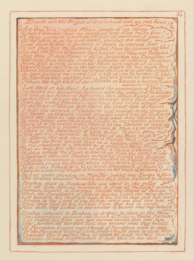 | Keywords: William Blake - Jerusalem, Plate 34, "Elevate into the Region of Brotherhood...." - Google Art Project.jpg print orange pen ink black watercolor paper cream Relief etching printed in orange with pen and black ink and watercolor on moderately thick smooth cream wove paper London 1757 London 1827 William male 2369124 Blake British 1757 - 1827 /collection/yale-center-for-british-art/artwork/jerusalem-plate-34-elevate-into-the-region-of-brotherhood-william-blake/2374523/ William Blake Artist /artist/william-blake/4130035/ 4130035 /collection/yale-center-for-british-art/ Yale Center for British Art 2305845 http //britishart yale edu/ 2/23/2012 9 46 35 PM /collection/yale-center-for-british-art/artwork/jerusalem-plate-34-elevate-into-the-region-of-brotherhood-william-blake/2374523/ 1804 1804 to 1820 roots text vines historical subject Relief etching printed in orange with pen and black ink and watercolor on moderately thick smooth cream wove paper 212 2374523 False 1820 3/24/2012 3 24 27 PM YCBA/lido-TMS-3464 http //collections britishart yale edu/vufind/Record/1667749 Yale Center for British Art Paul Mellon Collection print 1800 1830 Felpham Creation w150 x h212 cm 1804 to 1820 False 0 7421875 Volume jerusalem-plate-34-elevate-into-the-region-of-brotherhood-william-blake Jerusalem Plate 34 Elevate into the Region of Brotherhood j 150 No inscription Inscription _Signed_and_Dated Not signed not dated Not on View Relief etching printed in orange with pen and black ink and watercolor on moderately thick smooth cream wove paper roots text vines historical subject special url_id AgFO_P8wqJ7GAg PD-old-100-1923 1827 Jerusalem The Emanation of the Giant Albion - copy E 034 Google Art Project works by William Blake |