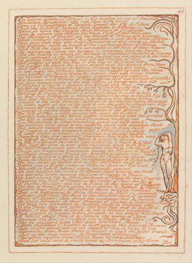 | Keywords: William Blake - Jerusalem, Plate 49, "The secret coverts of Albion...." - Google Art Project.jpg print orange pen ink black watercolor paper cream Relief etching printed in orange with pen and black ink and watercolor on moderately thick smooth cream wove paper London 1757 London 1827 William male 2369124 Blake British 1757 - 1827 /collection/yale-center-for-british-art/artwork/jerusalem-plate-49-the-secret-coverts-of-albion-william-blake/2380296/ William Blake Artist /artist/william-blake/4130035/ 4130035 /collection/yale-center-for-british-art/ Yale Center for British Art 2305845 http //britishart yale edu/ 2/23/2012 9 47 01 PM /collection/yale-center-for-british-art/artwork/jerusalem-plate-49-the-secret-coverts-of-albion-william-blake/2380296/ 1804 1804 to 1820 branches men fruit leaf text trees vines nudes historical subject Relief etching printed in orange with pen and black ink and watercolor on moderately thick smooth cream wove paper 213 2380296 False 1820 3/25/2012 6 08 11 PM YCBA/lido-TMS-3480 http //collections britishart yale edu/vufind/Record/1667767 Yale Center for British Art Paul Mellon Collection print 1800 1830 Felpham Creation w152 x h213 cm 1804 to 1820 False 0 73046875 Volume jerusalem-plate-49-the-secret-coverts-of-albion-william-blake Jerusalem Plate 49 The secret coverts of Albion j 152 No inscription Inscription _Signed_and_Dated Not signed not dated Not on View Relief etching printed in orange with pen and black ink and watercolor on moderately thick smooth cream wove paper branches men fruit leaf text trees vines nudes historical subject special url_id OAEosu1S8x-uzg PD-old-100-1923 1827 Jerusalem The Emanation of the Giant Albion - copy E 049 Google Art Project works by William Blake |