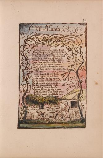 | Keywords: William Blake - Songs of Innocence and of Experience, Plate 24, "The Lamb" (Bentley 8) - Google Art Project.jpg print brown pen ink black watercolor paper cream Relief etching printed in dark-brown with pen and black ink and watercolor on moderately thick slightly textured cream wove paper London 1757 London 1827 William male 2369124 Blake British 1757 - 1827 /collection/yale-center-for-british-art/artwork/songs-of-innocence-and-of-experience-plate-24-the-lamb-bentley-8-william-blake/2391118/ William Blake Artist /artist/william-blake/4130035/ 4130035 /collection/yale-center-for-british-art/ Yale Center for British Art 2305845 http //britishart yale edu/ 2/23/2012 9 52 00 PM /collection/yale-center-for-british-art/artwork/songs-of-innocence-and-of-experience-plate-24-the-lamb-bentley-8-william-blake/2391118/ 1789 1789 to 1794 branches leaf sheep lamb children boy shepherd house text vegetation tree vines nude historical subject Relief etching printed in dark-brown with pen and black ink and watercolor on moderately thick slightly textured cream wove paper 121 2391118 False 1794 3/24/2012 5 06 09 PM YCBA/lido-TMS-3744 http //collections britishart yale edu/vufind/Record/1667987 Yale Center for British Art Paul Mellon Collection print 1780 1800 London Creation w79 x h121 cm 1789 to 1794 False 0 650390625 Volume songs-of-innocence-and-of-experience-plate-24-the-lamb-bentley-8-william-blake Songs of Innocence and of Experience Plate 24 The Lamb Bentley 8 s 79 Inscribed in black ink upper right 24 Inscription _Signed_and_Dated Not signed not dated Not on View Relief etching printed in dark-brown with pen and black ink and watercolor on moderately thick slightly textured cream wove paper branches leaf sheep lamb children boy shepherd house text vegetation tree vines nude historical subject special url_id HgEg_bGzv1KiMg PD-old-100-1923 1827 Songs of Innocence and Experience - Copy L Google Art Project works by William Blake |