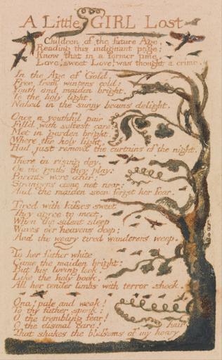 | Keywords: William Blake - Songs of Innocence and of Experience, Plate 44, "A Little Girl Lost" (Bentley 51) - Google Art Project.jpg print color watercolor paper cream Color-printed relief etching with watercolor on moderately thick slightly textured cream wove paper London 1757 London 1827 William male 2369124 Blake British 1757 - 1827 /collection/yale-center-for-british-art/artwork/songs-of-innocence-and-of-experience-plate-44-a-little-girl-lost-bentley-51-william-blake/2362719/ William Blake Artist /artist/william-blake/4130035/ 4130035 /collection/yale-center-for-british-art/ Yale Center for British Art 2305845 http //britishart yale edu/ 2/23/2012 9 37 40 PM /collection/yale-center-for-british-art/artwork/songs-of-innocence-and-of-experience-plate-44-a-little-girl-lost-bentley-51-william-blake/2362719/ 1794 1794 birds branches leaf text vines historical subject Color-printed relief etching with watercolor on moderately thick slightly textured cream wove paper 121 2362719 False 1794 3/24/2012 2 17 18 PM YCBA/lido-TMS-2521 http //collections britishart yale edu/vufind/Record/1667392 Yale Center for British Art Paul Mellon Collection print 1790 1800 Felpham Creation w73 x h121 cm 1794 False 0 6171875 Volume songs-of-innocence-and-of-experience-plate-44-a-little-girl-lost-bentley-51-william-blake Songs of Innocence and of Experience Plate 44 A Little Girl Lost Bentley 51 s 73 Inscribed in graphite upper center 30 ; in graphite lower center 44 Inscription _Signed_and_Dated Not signed not dated Not on View Color-printed relief etching with watercolor on moderately thick slightly textured cream wove paper birds branches leaf text vines historical subject special url_id igEC5YUEWHr_xg PD-old-100-1923 1827 Songs of Innocence and Experience - Copy F Google Art Project works by William Blake |