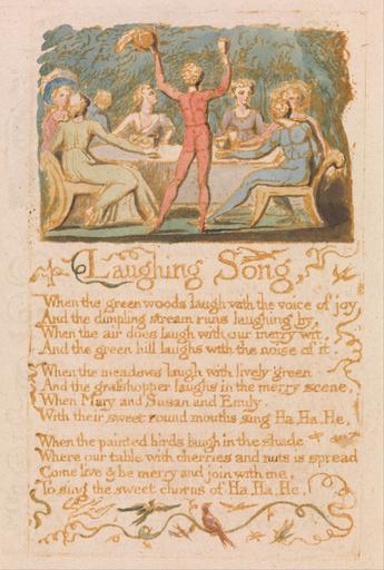 | Keywords: William Blake - Songs of Innocence, Plate 28, "Laughing Song" (Bentley 15) - Google Art Project.jpg Songs of Innocence Bentley Copy G Date 1789 Medium Relief etching printed in brown with pen and ink and watercolor on moderately thick slightly textured cream wove paper Dimensions Sheet 7 1/2 x 5 3/8 inches 19 1 x 13 7 cm Plate 4 1/4 x 2 5/8 inches 10 8 x 6 7 cm Plate verso 4 3/8 x 2 5/8 inches 11 1 x 6 7 cm Credit Line Yale Center for British Art Paul Mellon Collection technique print brown pen ink paper cream Relief etching printed in brown with pen and ink on moderately thick slightly textured cream wove paper print brown pen ink watercolor paper cream Relief etching printed in brown with pen and ink and watercolor on moderately thick slightly textured cream wove paper London 1757 London 1827 William male 2369124 Blake British 1757 - 1827 /collection/yale-center-for-british-art/artwork/songs-of-innocence-plate-28-laughing-song-bentley-15-william-blake/2381540/ William Blake Artist /artist/william-blake/4130035/ 4130035 /collection/yale-center-for-british-art/ Yale Center for British Art 2305845 http //britishart yale edu/ 2/23/2012 9 51 26 PM /collection/yale-center-for-british-art/artwork/songs-of-innocence-plate-28-laughing-song-bentley-15-william-blake/2381540/ 1789 1789 branches leaf dinner sitting drinking sunset mother children men women text trees vines chairs table historical subject Relief etching printed in brown with pen and ink and watercolor on moderately thick slightly textured cream wove paper 108 2381540 False 1789 3/24/2012 4 08 02 PM YCBA/lido-TMS-3715 http //collections britishart yale edu/vufind/Record/1667963 Yale Center for British Art Paul Mellon Collection print 1780 1790 Felpham Creation w67 x h108 cm 1789 False 0 673828125 Volume songs-of-innocence-plate-28-laughing-song-bentley-15-william-blake Songs of Innocence Plate 28 Laughing Song Bentley 15 s 67 No inscription Inscription _Signed_and_Dated Not signed not dated Not on View Relief etching printed in brown with pen and ink and watercolor on moderately thick slightly textured cream wove paper branches leaf dinner sitting drinking sunset mother children men women text trees vines chairs table historical subject special url_id jAGgvMprNkKFqw PD-old-100-1923 1827 Songs of Innocence - Copy G 1789 Songs of Innocence - Laughing Song Google Art Project works by William Blake Paul Mellon Collection |