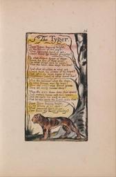 | Keywords: William Blake - Songs of Innocence and of Experience, Plate 36, "The Tyger" (Bentley 42) - Google Art Project.jpg print brown pen ink black watercolor paper cream Relief etching printed in dark-brown with pen and black ink and watercolor on moderately thick slightly textured cream wove paper London 1757 London 1827 William male 2369124 Blake British 1757 - 1827 /collection/yale-center-for-british-art/artwork/songs-of-innocence-and-of-experience-plate-36-the-tyger-bentley-42-william-blake/2384548/ William Blake Artist /artist/william-blake/4130035/ 4130035 /collection/yale-center-for-british-art/ Yale Center for British Art 2305845 http //britishart yale edu/ 2/23/2012 9 52 19 PM /collection/yale-center-for-british-art/artwork/songs-of-innocence-and-of-experience-plate-36-the-tyger-bentley-42-william-blake/2384548/ 1789 1789 to 1794 branches leaf tiger grass text vegetation trees vines historical subject Relief etching printed in dark-brown with pen and black ink and watercolor on moderately thick slightly textured cream wove paper 111 2384548 False 1794 3/24/2012 4 24 01 PM YCBA/lido-TMS-3757 http //collections britishart yale edu/vufind/Record/1668001 Yale Center for British Art Paul Mellon Collection print 1780 1800 Felpham Creation w64 x h111 cm 1789 to 1794 False 0 65625 Volume songs-of-innocence-and-of-experience-plate-36-the-tyger-bentley-42-william-blake Songs of Innocence and of Experience Plate 36 The Tyger Bentley 42 s 64 Inscribed in black ink upper right 36 Inscription _Signed_and_Dated Not signed not dated Not on View Relief etching printed in dark-brown with pen and black ink and watercolor on moderately thick slightly textured cream wove paper branches leaf tiger grass text vegetation trees vines historical subject special url_id pgFqXpVNysGj7w PD-old-100-1923 1827 Songs of Innocence and Experience - Copy L Google Art Project works by William Blake |