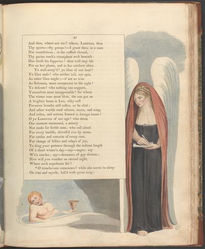 | Keywords: William Blake - Young's Night Thoughts, Page 27, "O treacherous conscience!" - Google Art Project.jpg ~ 1797 etching line engraving watercolor paper cream Etching and line engraving with watercolor on moderately thick slightly textured cream wove paper London 1757 London 1827 William male 2369124 Blake British 1757 - 1827 /collection/yale-center-for-british-art/artwork/youngs-night-thoughts-page-27-o-treacherous-conscience-william-blake/2372063/ William Blake Artist /artist/william-blake/4130035/ 4130035 /collection/yale-center-for-british-art/ Yale Center for British Art 2305845 http //britishart yale edu/ 2/23/2012 9 34 44 PM /collection/yale-center-for-british-art/artwork/youngs-night-thoughts-page-27-o-treacherous-conscience-william-blake/2372063/ 1792 ca 1797 women angels drinking men text writing wings robes gowns goblets cups historical subject books Etching and line engraving with watercolor on moderately thick slightly textured cream wove paper 425 2372063 False 1802 3/24/2012 3 08 03 PM YCBA/lido-TMS-2318 http //collections britishart yale edu/vufind/Record/1667270 Yale Center for British Art Paul Mellon Collection print 1790 1810 Felpham Creation w324 x h425 cm ca 1797 False 0 822265625 Volume youngs-night-thoughts-page-27-o-treacherous-conscience-william-blake Young's Night Thoughts Page 27 O treacherous conscience y 324 No inscription Inscription _Signed_and_Dated Not signed not dated Not on View Etching and line engraving with watercolor on moderately thick slightly textured cream wove paper women angels drinking men text writing wings robes gowns goblets cups historical subject books special url_id PAFrc8eRj6Pnzw PD-old-100-1923 1827 William Blake's illustrations to Young's Night Thoughts Google Art Project works by William Blake |