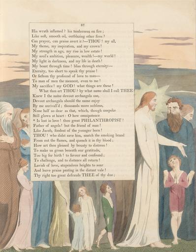 | Keywords: William Blake - Young's Night Thoughts, Page 87, "Is Lost in Love! Thou Great Philanthropist" - Google Art Project.jpg etching line engraving watercolor paper cream Etching and line engraving with watercolor on moderately thick slightly textured cream wove paper London 1757 London 1827 William male 2369124 Blake British 1757 - 1827 /collection/yale-center-for-british-art/artwork/youngs-night-thoughts-page-87-is-lost-in-love-thou-great-philanthropist-william-blake/2377479/ William Blake Artist /artist/william-blake/4130035/ 4130035 /collection/yale-center-for-british-art/ Yale Center for British Art 2305845 http //britishart yale edu/ 2/23/2012 9 49 11 PM /collection/yale-center-for-british-art/artwork/youngs-night-thoughts-page-87-is-lost-in-love-thou-great-philanthropist-william-blake/2377479/ 1797 1797 beard children men women text historical subject Etching and line engraving with watercolor on moderately thick slightly textured cream wove paper 445 2377479 False 1797 3/24/2012 3 42 05 PM YCBA/lido-TMS-3566 http //collections britishart yale edu/vufind/Record/1667860 Yale Center for British Art Paul Mellon Collection print 1790 1800 Felpham Creation w321 x h445 cm 1797 False 0 77734375 Volume youngs-night-thoughts-page-87-is-lost-in-love-thou-great-philanthropist-william-blake Young's Night Thoughts Page 87 Is Lost in Love Thou Great Philanthropist y 321 No inscription Inscription _Signed_and_Dated Not signed not dated Not on View Etching and line engraving with watercolor on moderately thick slightly textured cream wove paper beard children men women text historical subject special url_id ggEniFeuK0Pe1Q PD-old-100-1923 1827 William Blake's illustrations to Young's Night Thoughts Google Art Project works by William Blake |