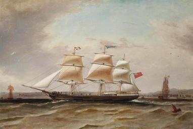 | Keywords: William Clark - The John Kerr Co.'s ‚John Ferguson‘ off the Tail of the Bank on the Clyde.jpg The John Kerr Co 's šJohn Ferguson ˜ off the Tail of the Bank on the Clyde possibly on her maiden voyag 1854 oil canvas cm 76 2 111 7 object history credit line Wm Clark 1854 ~ lower left signature and date accession number christies online 5627734 PD-Art-100 William Clark painter John Ferguson ship 1854 19th-century sailing ships in paintings 1854 paintings | ||||