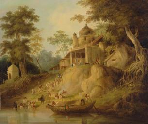 | Keywords: William Daniell - The Banks of the Ganges - Google Art Project.jpg ~ 1825 Chertsey 1769 London 1837 William male 2326575 Daniell British 1769 - 1837 /collection/yale-center-for-british-art/artwork/the-banks-of-the-ganges-william-daniell/2445457/ William Daniell Attributed to /artist/william-daniell/4126698/ 4126698 /collection/yale-center-for-british-art/ Yale Center for British Art 2305845 http //britishart yale edu/ 2/24/2012 12 20 01 AM /collection/yale-center-for-british-art/artwork/the-banks-of-the-ganges-william-daniell/2445457/ 1820 ca 1825 roots Orientalism white color people man bathers rocks water banks landscape flag boat Oil on canvas 635 2445457 False 1830 3/24/2012 10 54 56 PM YCBA/lido-TMS-721 http //collections britishart yale edu/vufind/Record/1670839 Yale Center for British Art Paul Mellon Collection painting 1820 1840 London Creation w737 x h635 cm ca 1825 False 1 1906976744186 Item the-banks-of-the-ganges-william-daniell The Banks of the Ganges b 737 No inscription Inscription _Signed_and_Dated Not signed not dated Not on View Oil on canvas roots Orientalism white color people man bathers rocks water banks landscape flag boat special url_id gQFUYn1Z1ThbQg PD-old-100-1923 1837 William Daniell Google Art Project works by William Daniell Ganges River in art Landscape paintings of India 1820s paintings from India 1825 oil on canvas paintings 19th-century oil on canvas paintings in the United States 1825 paintings in the United States Paintings in the Yale Center for British Art |