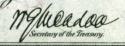 | Keywords: William Gibbs McAdoo (Engraved Signature).jpg en Engraved signature on U S Bank Notes “ paper currency 2012-12-26 www nationalcurrencyfoundation org Bureau of Engraving and Printing Smithsonian Institution PD-USGov Engravings Signatures on United States Banknotes Smithsonian Institution Currency National Numismatic Collection Banknote signatures scanned by User Godot13 | ||||