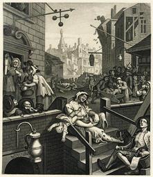 | Keywords: William Hogarth - Gin Lane.jpg Gin Lane from Beer Street and Gin Lane The accompanying poem not printed in this reissue reads Gin cursed Fiend with Fury fraught Makes human Race a Prey It enters by a deadly Draught And steals our Life away Virtue and Truth driv'n to Despair Its Rage compells to fly But cherishes with hellish Care Theft Murder Perjury Damned Cup that on the Vitals preys That liquid Fire contains Which Madness to the heart conveys And rolls it thro' the Veins La rue du Gin Gravure accompagnée d'un poème dans sa première édition Traduction du poème Le gin maudit démon empli de furie Fait de la race humaine une proie Il rentre en une gorgée mortelle Et vole a vie La Vertu et la vérité menées au désespoir Sa rage les fait fuir Mais il chérit avec un attention infernale Le vol le meurtre et le parjure Maudite coupe qui happe les vivants Ce liquide contient un feu Dont il mène la folie au coeur Et et le guide dans les veines Gin Lane El callejón de la ginebra - 1751 del pintor y grabador William Hogarth donde se ilustran los estragos y excesos de la ginebra en la Inglaterra del siglo XVIII La primera edición de este grabado fue acompañada por un poema cuya traducción al español serÃa la siguiente La ginebra maldito demonio lleno de furia Que hace de la raza humana su presa Que entra en un trago mortal Y vuela la vida La virtud y la verdad llevadas a la desesperación Su rabia las hace huir Pero ama con atención infernal El robo el homicidio y el perjurio Maldita copa que atrapa a los vivientes Ese lÃquido contiene un fuego Que lleva su locura al corazón Y le guÃa en las venas Reprint from circa 1880 in uploader's possession between 1750 1751 Original ; this print comes from a reengraving circa 1806-09 by Samuel Davenport from Hogarth's originals Etching and line engraving size mm 359 341 Institution Various collections object history credit line accession number PD-old-100 See also Image William Hogarth - Beer Street jpg GinLane jpg Assessments 5 2008 1 1 picture of the day 2008 05 04 Gin Lane 18th-century engravings WGA form graphics WGA type genre WGA School English WGA time period 1701-1750 Samuel Davenport |