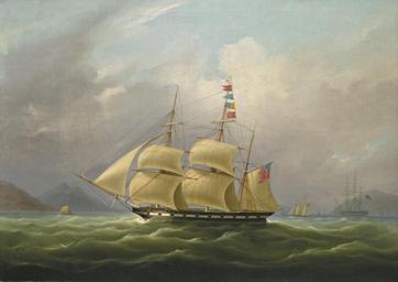 | Keywords: William John Huggins - The barque ‚Sylph‘.jpg William John Huggins William John Huggins 1781 “ 1845 ca 1838 oil canvas cm 68 96 object history PROVENANCE Mr Alexander Robertson Merchant of Macao; by descent until sold the property of a Lady London Sotheby's 12 March 1986 lot 2 credit line Recorded in 1838 as a Merchant of Macao during the 1820s and 1830s Alexander Robertson was in loose partnership with the firm of Jardine and Matheson acting as super cargo on the firm's vessels Carvel built with a displacement of 251 tons Robertson is recorded as having traded from the Sylph during the early 1830s running between Macao and the Canton River to India accession number http //www sothebys com/de/auctions/ecatalogue/2011/old-master-early-british-paintings-l11030/lot 265 html Sotheby's PD-Art-100 William John Huggins 19th-century sailing ships in paintings 1838 paintings Images from Sotheby's |