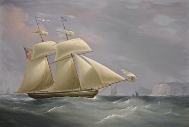 | Keywords: William John Huggins - The topsail schooner ‚Amy Stockdale‘ off Dover.jpg William John Huggins William John Huggins 1781 “ 1845 1838 oil canvas cm 87 127 5 object history PROVENANCE Anonymous sale London Bonham's 31 March 1977 lot 208 credit line signed and dated lower left W J Huggins 1838 The present painting commemorates the Amy Stockdale's safe return from a voyage to Sierra Leone under the command of Captain Gates see Lloyd's List's for 17th October 1838 For details on this ship see D McGregor Schooners in Four Centuries p 43 in which he illustrates a print of the ship dating from 1893 <ref>http //www sothebys com/de/auctions/ecatalogue/lot pdf L11030 html/f/263/L11030-263 pdf Sotheby's PDF </ref> reflist accession number http //www sothebys com/de/auctions/ecatalogue/2011/old-master-early-british-paintings-l11030/lot 263 html Sotheby's PD-Art-100 William John Huggins 19th-century sailing ships in paintings 1838 paintings Images from Sotheby's |