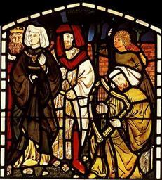 | Keywords: William Morris Tristram and Isolde at King Arthur's court.jpg Tristram and Isoude at King Arthur's court one of a set of 13 stained glass panels commissioned from Morris Marshall Faulkner Co by Walter Dunlop for Harden Grange near Bingley Yorkshire This is one of four panels designed by Morris Other panels in the series were designed by Arthur Hughes Valentine Prinsep Dante Gabriel Rossetti Sir Edward Burne-Jones and Ford Madox Brown Bradford Art Gallery http //www angelfire com/al/tristanglass/ 1862 Creator William Morris PD-old-100 Tristram and Isoude stained glass panels Stained glass windows by William Morris |