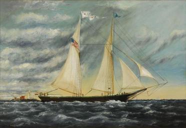 | Keywords: William P. Stubbs - The two-masted schooner Mary Camden.jpg William Pierce Stubbs William Pierce Stubbs 1842 - 1909 oil canvas cm 55 88 81 28 object history credit line accession number http //www arcadja com/auctions/de/private/stubbs_william_pierce/kunstwerken/27695/0/ Eldred's East Dennisus 2011 07 21 lot 884 via ARCADJA auction results PD-old-auto-1923 1909 William P Stubbs 19th-century sailing ships in paintings | ||||