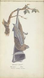 | Keywords: William Smyth pteropus.jpg Bonin Islands Pteropus bat common resting position Drawing on paper watercolor Dimensions 13 7 x 23 7 cm UC Berkeley Bancroft Library<br> Object ID BANC PIC 1963 002 1303 20--AL B <br> Downloaded from http //lunaweb giza tulane edu/luna/servlet/detail/MOAC~100~1~68314~46746 Bonin-Isl-an-ds -Pteropus -bat -com circa 1825 1827 William Smyth 1800-1877 PD-100 William Smyth 1800-1877 Pteropus pselaphon | ||||