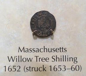 | Keywords: Willow Tree Shilling, Massachusetts, 1652 (struck 1653-1660) - National Museum of American History - DSC00183.jpg en Exhibit in the National Museum of American History Washington DC USA Photography was permitted in the museum without restriction 2015-03-27 11 27 37 own Daderot other versions cc-zero Coins in the National Museum of American History Coins of Colonial Massachusetts Shilling | ||||