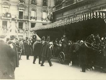 | Keywords: president wilson france paris peace conference fourteen points fourteenpoints parade carriage monochrome Local Accession Number: 173 Description: Wilson traveling with his party through Paris, France. Photographer: U.S. Signal Corps Source: Research Library, 20th Century Fox Size: 8x10 Medium: Print, Black and White Date: 1918 Local Accession Number: 173 Description: Wilson traveling with his party through Paris, France. Photographer: U.S. Signal Corps Source: Research Library, 20th Century Fox Size: 8x10 Medium: Print, Black and White Date: 1918 |