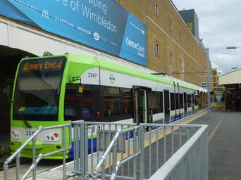 | Keywords: Wimbledon-Tramlink-Plat10a-2550-Plat10b-2567-P1390143.jpg en Two Bombardier trams at Wimbledon station - one in each platform 2547 on route No 4 in fleet livery going to Elmers End at platform No 10b and 2550 in yellow 'Safety Tram' advertising livery going to New Addington at platform No 10a 2016-10-19 14 20 15 own Spsmiler other versions cc-zero Wimbledon station Tramlink Tramlink tram 2547 Tramlink tram 2550 2 Tramlink trams Tramlink trams on route 4 Tramlink trams on route 3 Tramlink trams in green white and blue livery Tramlink trams in advertising liveries 2016 on Tramlink October 2016 in London 2016 in the London Borough of Merton |