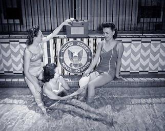 | Keywords: WiN-40-38: U.S. Navy Nurses sun themselves in the shallow end of the swimming pool at U.S. Naval Hospital, San Diego, California, probably 1944. Left to right: Navy Nurse Doris Ward; Navy Nurse Elizabeth Payne; and Navy Nurse Mary Dierks. Swimming was popular in the hospital physical fitness program. Courtesy of BUMED Historian’s Office. (2/20/2009). WiN-40-38: U.S. Navy Nurses sun themselves in the shallow end of the swimming pool at U.S. Naval Hospital, San Diego, California, probably 1944. Left to right: Navy Nurse Doris Ward; Navy Nurse Elizabeth Payne; and Navy Nurse Mary Dierks. Swimming was popular in the hospital physical fitness program. Courtesy of BUMED Historian’s Office. (2/20/2009). |