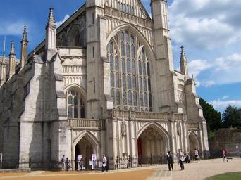 Keywords: winchester cathedral hampshire gothic cathedral mediaeval religious architecture sunshine summer outside