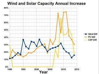 | Keywords: Wind and Solar Capacity Annual Growth Rate.png en Wind and solar worldwide installed capacity annual growth rate This chart may be updated annually 2014-05-31 own Delphi234 File Wind and Solar Average Capacity Growth Rate png cc-zero Uploaded with UploadWizard Wind energy statistics Solar energy statistics |