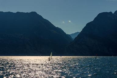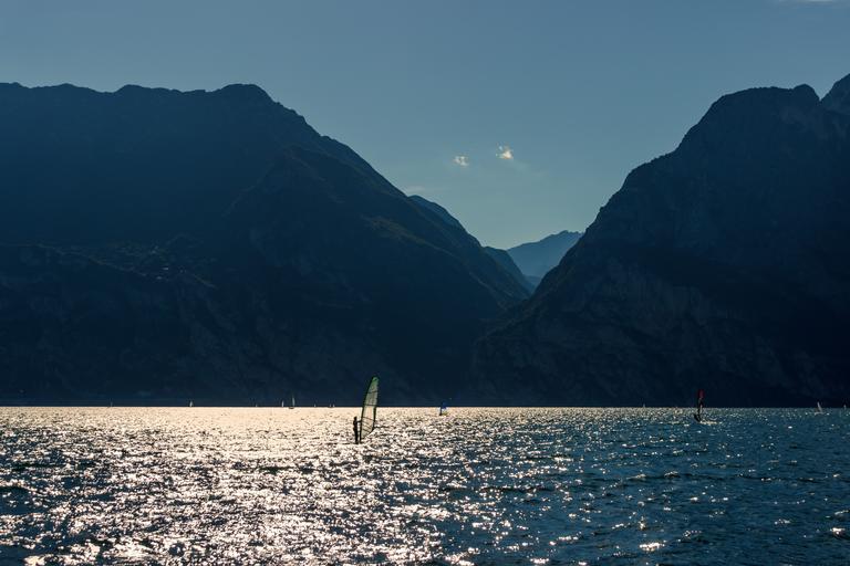 Keywords: wind surfing water sports wind water wave sport leisure mountains back light