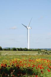Keywords: wind turbines farmland environmentally friendly meadow scenery