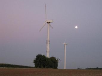 Keywords: Wind turbines Oberjettingen 2.jpg de Der Mond über den beiden Jettinger Windrädern own Windhacker 2010-09-21 Wind turbines in Jettingen