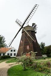Keywords: windmill bornholm denmark building garden brown green