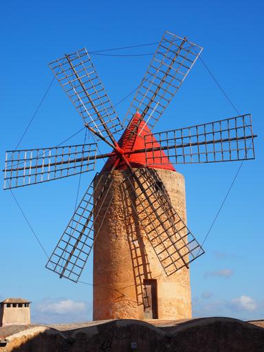 Keywords: windmill mill wind power algaida mallorca landmark places of interest technical building building architecture roof red windmill blades wing tower windmill mill wing sky westfälische mühlenstraße veltheim north rhine-westphalia mill technique nostalgia turn rotate grind historically energy renewable energy flour mill balearic islands spain technology worth a visit