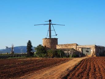 Keywords: windmill old lapsed ruin mallorca muro mill wind energy wing wind power dilapidated agriculture meaningless broken bauruine bleak leave hof farm ranch