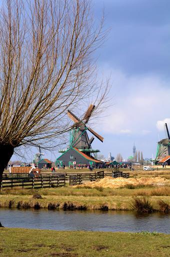 Keywords: windmill river scenary water sky nature landscape dutch holland rural netherlands countryside view blue canal scenery scenic outdoors cloud farmland grass landmark travel europe old wind reflection