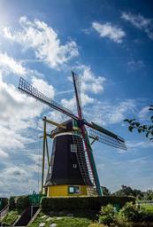 Keywords: windmill sky mill wing clouds blue wood flour mill wind power agriculture yellow black red green old holland netherlands summer