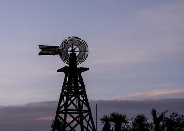 Keywords: windmill western texas sky countryside water blades arrow tower picturesque vane rural landscape weathered silhouette