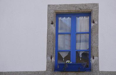 Keywords: window blue street flowers city house colorful houses flowers in pots