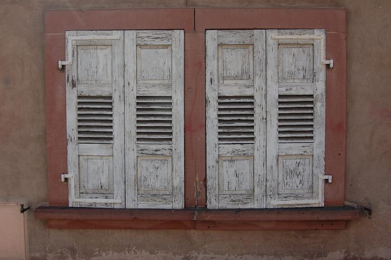 Keywords: window double glazed windows facade home old lapsed run down bare building forget decay broken wood sand stone closed shutter shutters