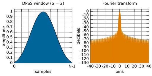 | Keywords: Window function and frequency response - DPSS (alpha = 2).svg en Window function and its Fourier transform Digital Prolate Spheroidal Sequences DPSS window alpha 2 2013-02-19 00 25 15 own Olli Niemitalo cc-zero Source code The Octave MATLAB clone source code that generated this image is available File Window function and frequency response - Rectangular svg Uploaded with UploadWizard Window function Images with Octave source code | ||||