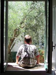 Keywords: window guy from behind olivo olive tree trees leaves