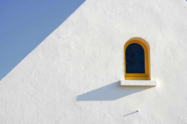 Keywords: window minimal white yellow blue sky shadow minimalism wall clean