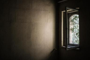 Keywords: window old abandoned ivy overgrown shadow frame wall lost places