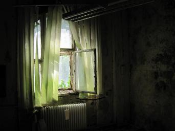 Keywords: window old broken light green wall atmosphere ruin lost places decay dilapidated mood run down