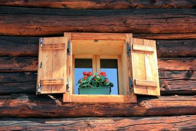 Keywords: window shutter shutters wooden shutters vacation hut flower box alpine country rustic