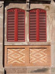 Keywords: window shutters facade closed wooden shutters red structure hauswand