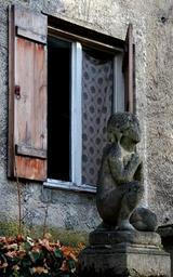 Keywords: window statue cemetery munich angel curtain