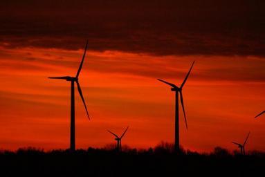 Keywords: windräder sun wind power wind energy clouds sunrise morning landscape light