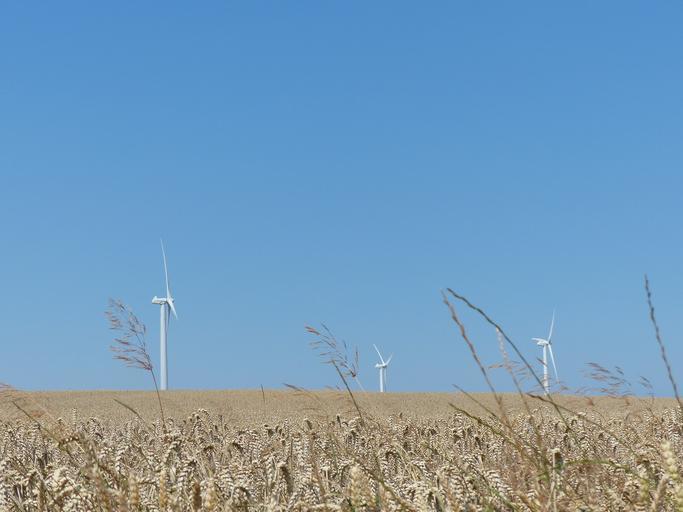 Keywords: windräder wind park wind power wind energy summer field cereals sky