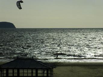 Keywords: windsurfer kitesurfing parasurfer kitesurfer water sports ocean sea beach seascape sky water sand wave coast coastal marine coastline scenic outdoor nature environment seaside